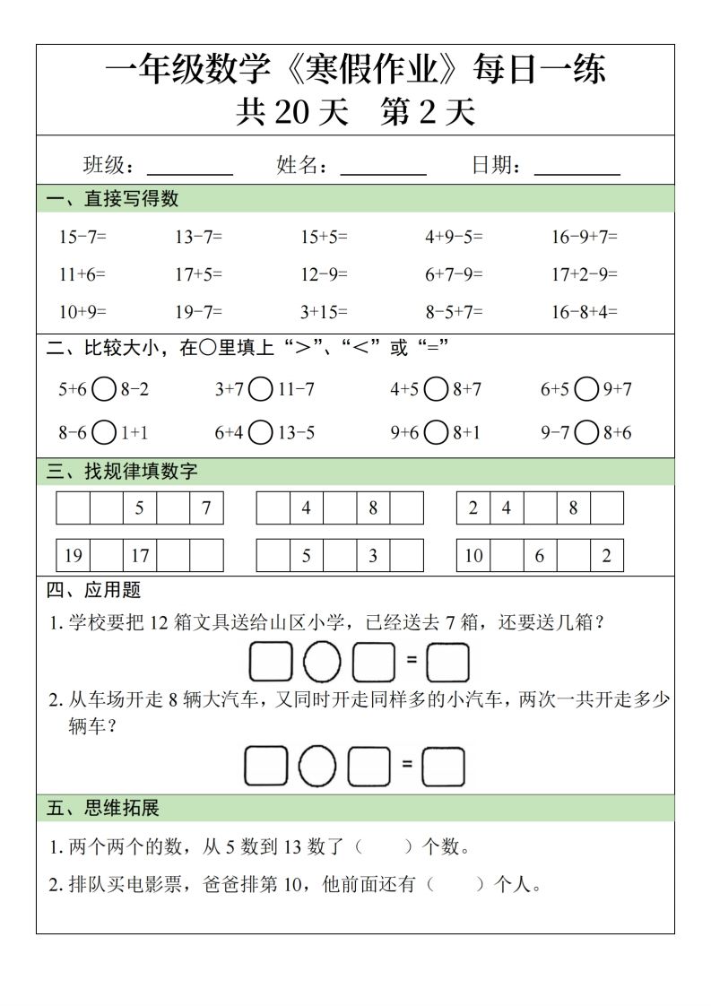 首页 > 全部 > 数学 > 一下【数学寒假作业】每日一练20天20页