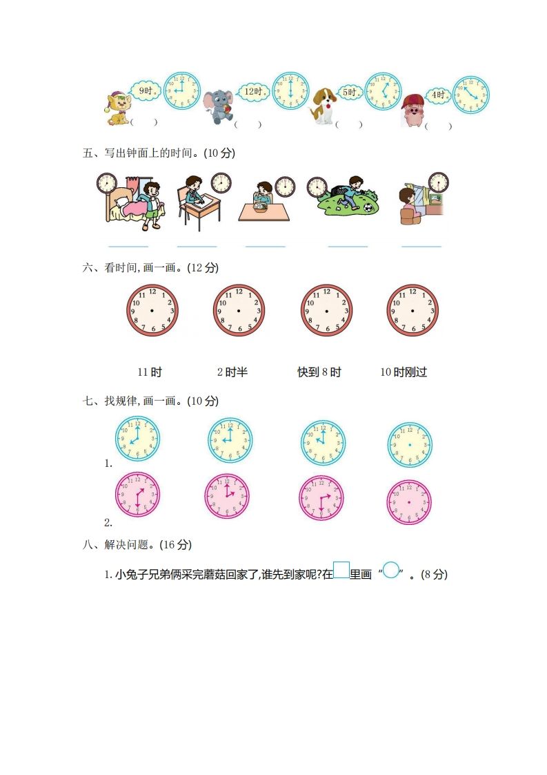初级 一下青岛版数学第一单元检测卷1(54制)