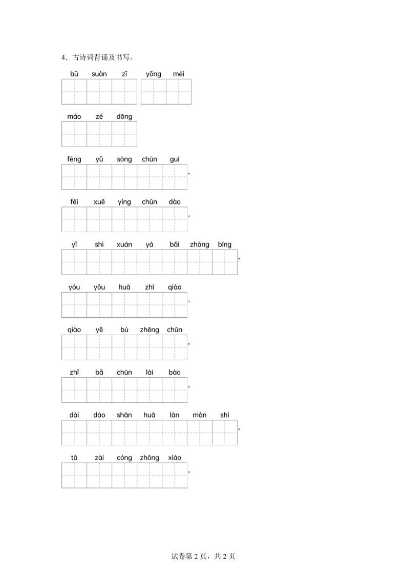 初级 统编版语文四年级下册第一单元课文生字复习和古诗词默写