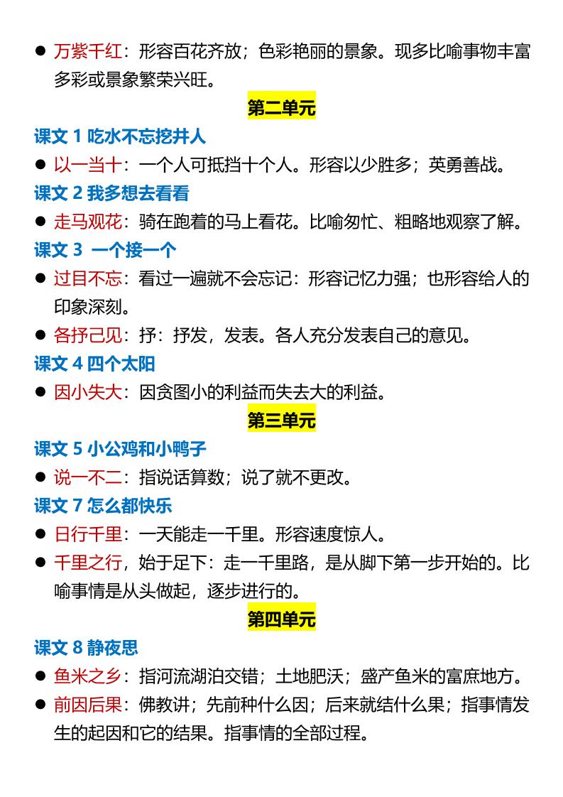2025春新版【一年级下册语文】全册1-8单元成语解释