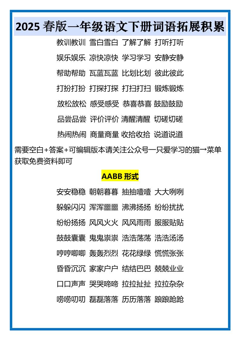 首页 > 全部 > 语文 > 2025春新版一年级语文下册词语拓展积累