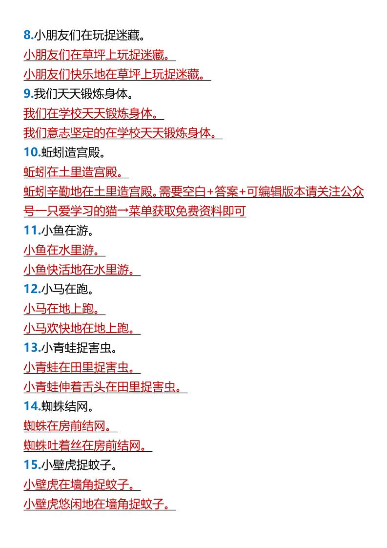 2025春新版一年级语文下册专项练习—扩句