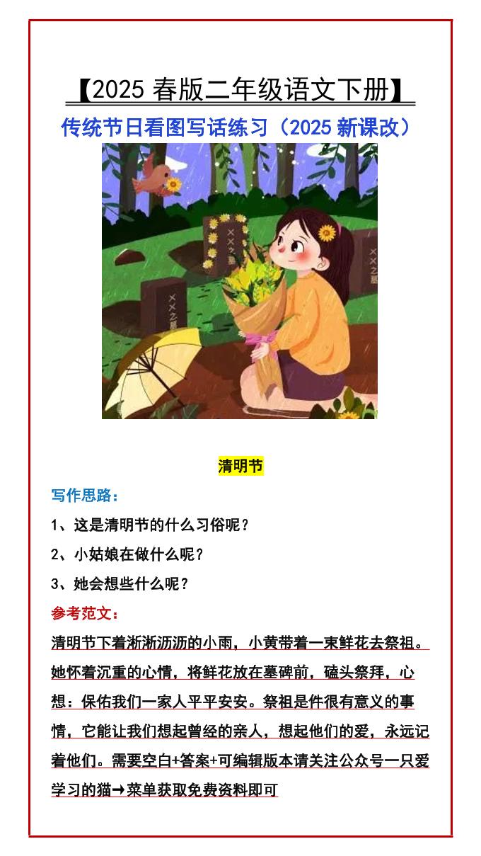 初级 2025春新版【二年级语文下册】传统节日看图写话练习