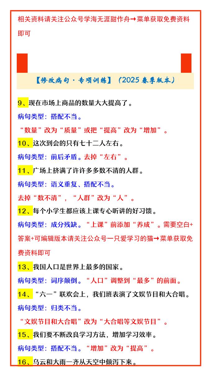 首页 > 全部 > 语文 > 2025春新版四年级下册语文【修改病句·专项训练