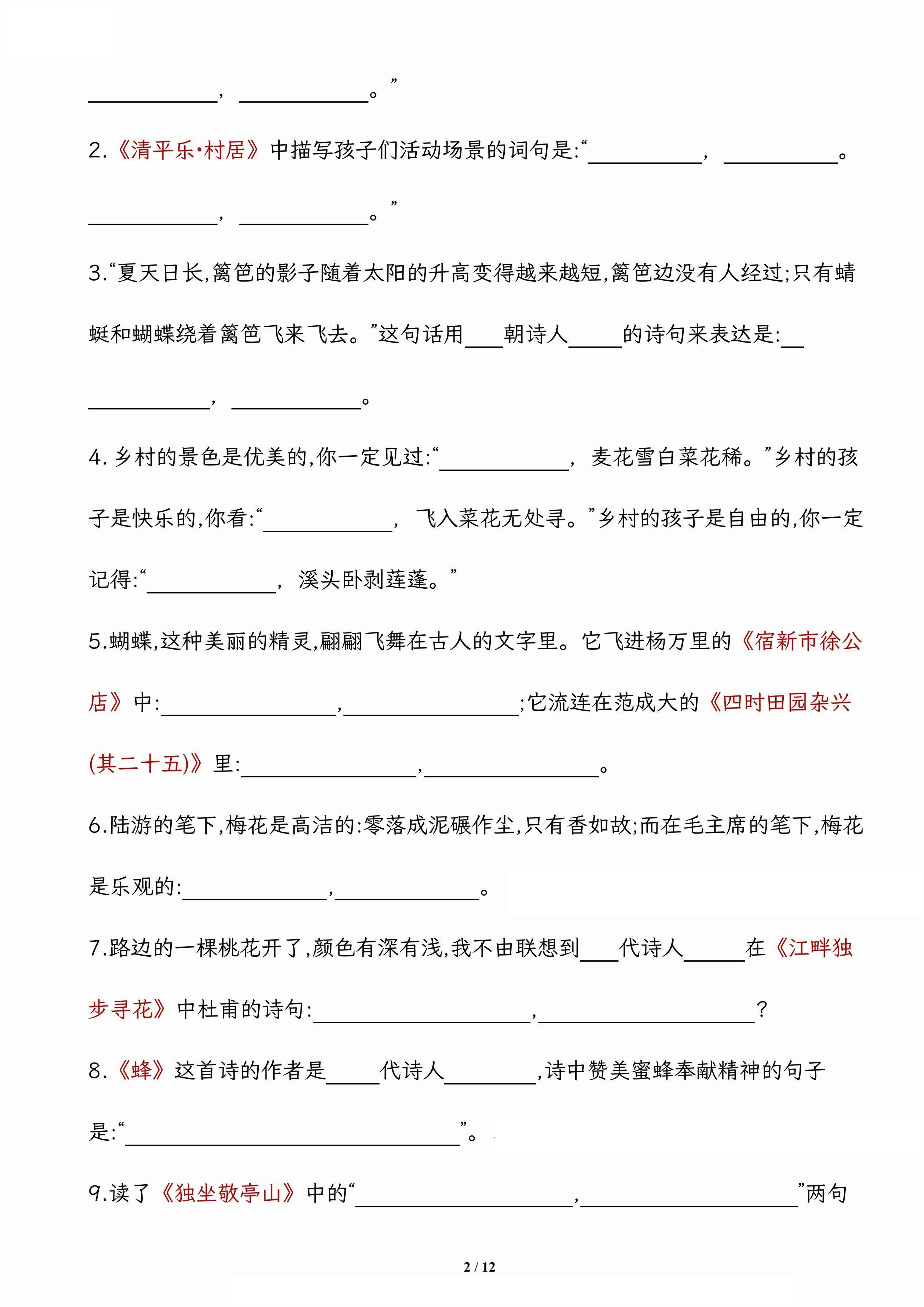 初级 ❀【古诗必考题型期末归类复习】四下语文