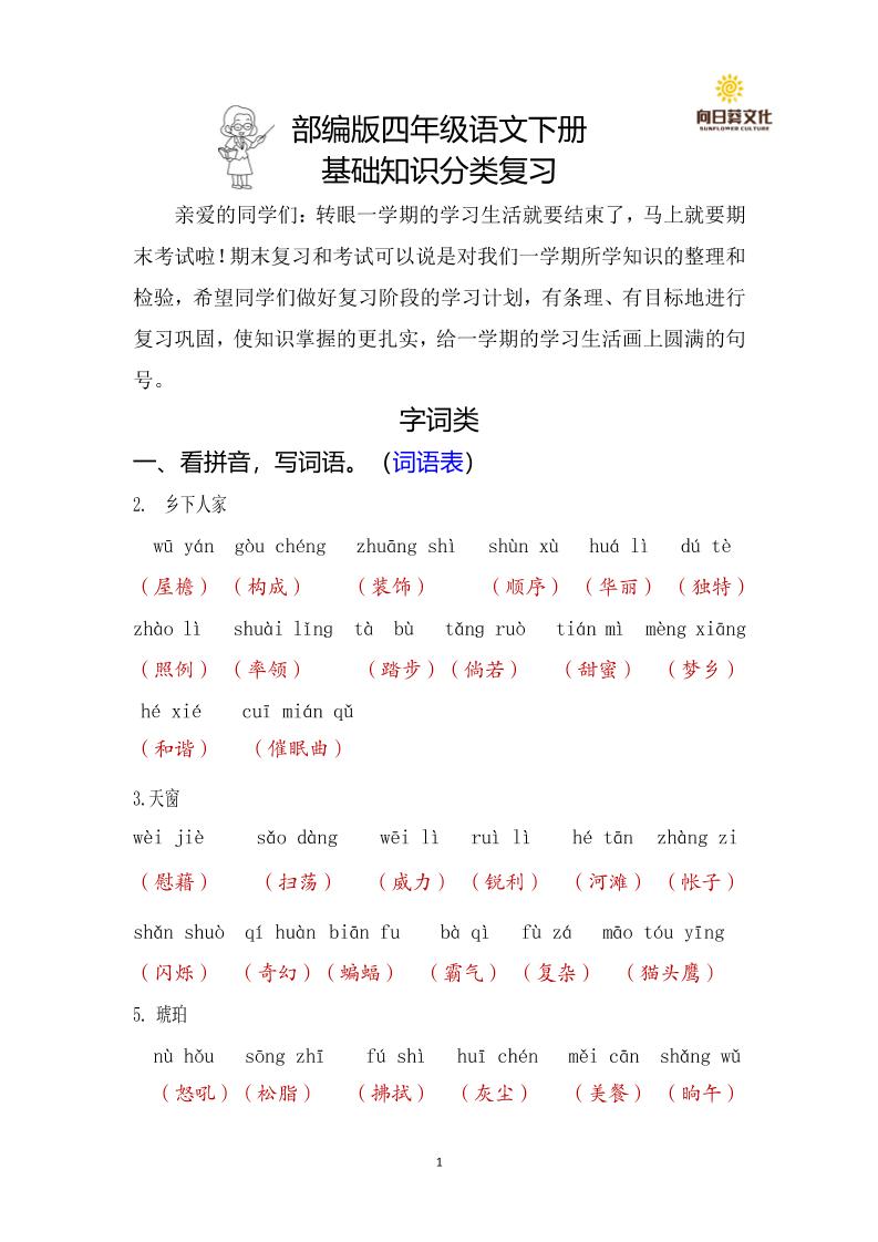 首页 > 全部 > 语文 > ❀【期末复习五大基础知识专项-答案】四下语文