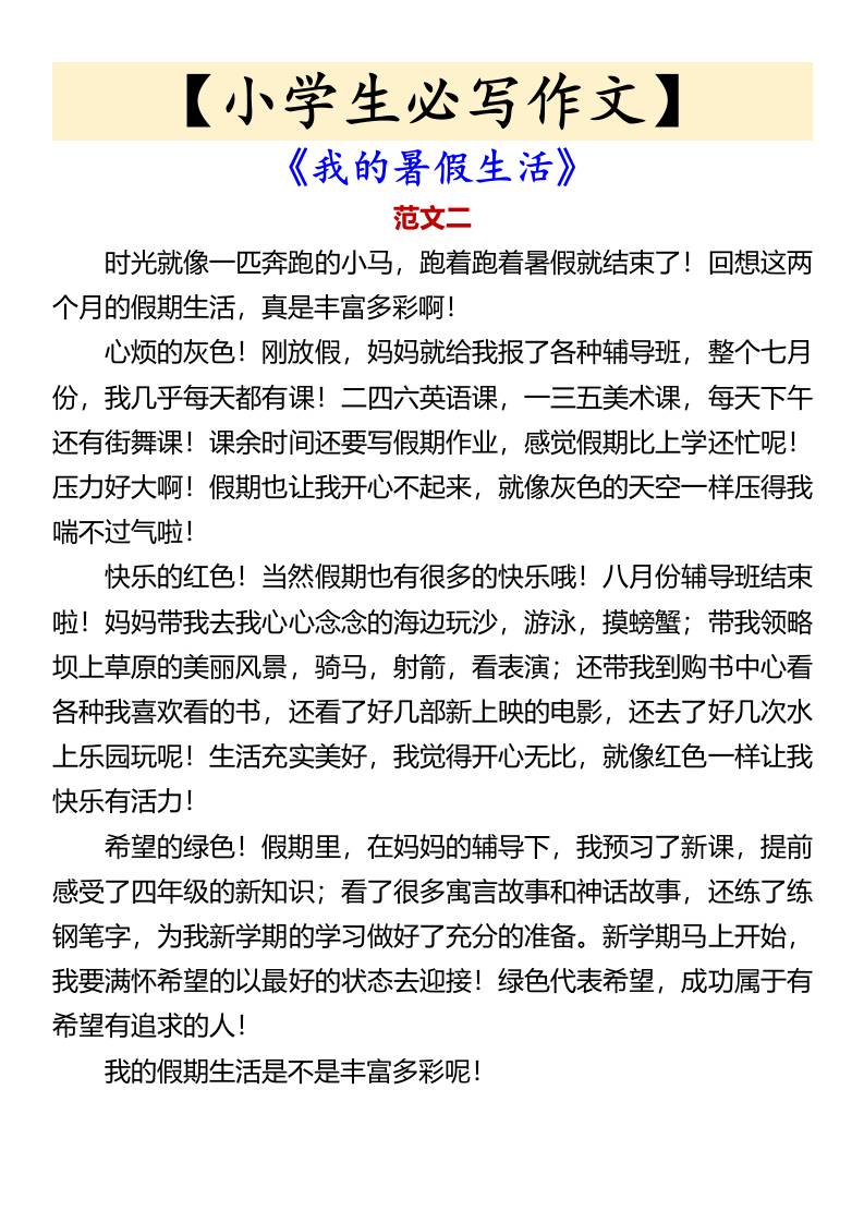 初级 【小学生必写作文】《我的暑假生活》-小升初语文