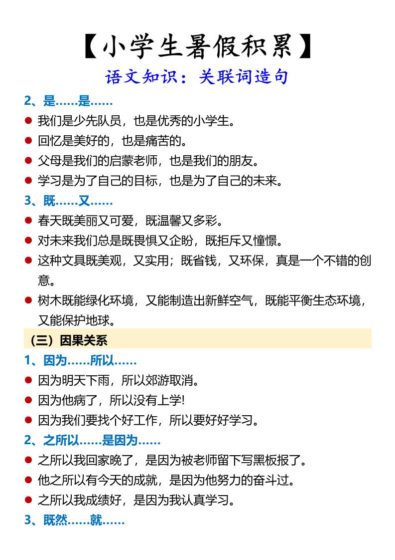 【小学生暑假积累】语文知识:关联词造句-小升初语文