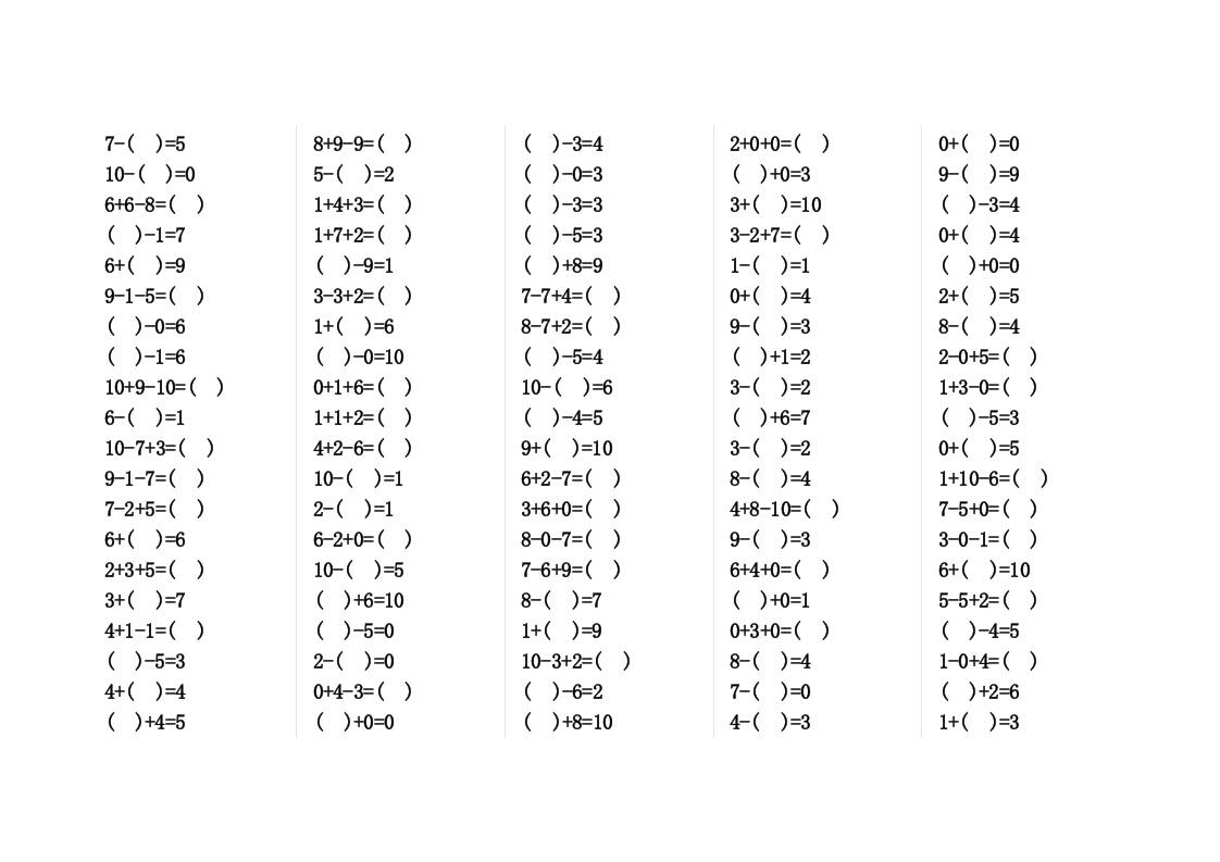 首页 > 全部 > 数学专项 > 【口算题】20以内口算题卡-幼小衔接数学