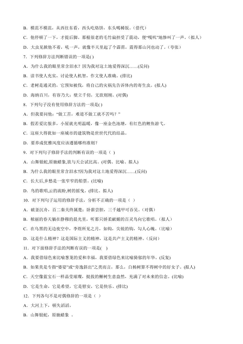 首页 > 全部 > 语文 > 专题05:修辞手法