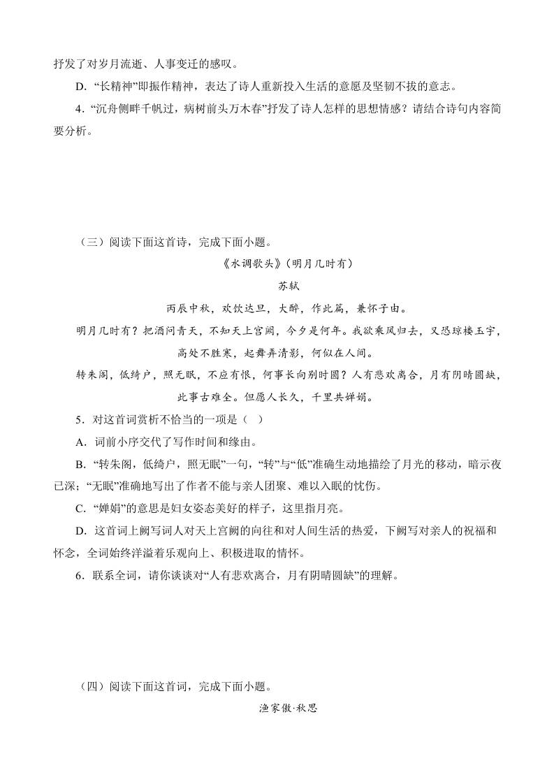初级 专题08:诗词鉴赏