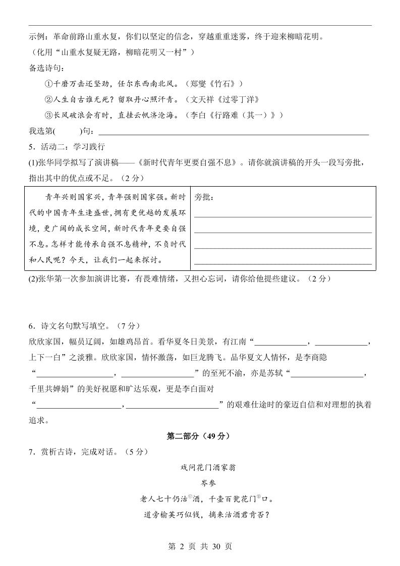 首页 > 全部 > 语文 > 9上语文期中卷02【第1-6单元】