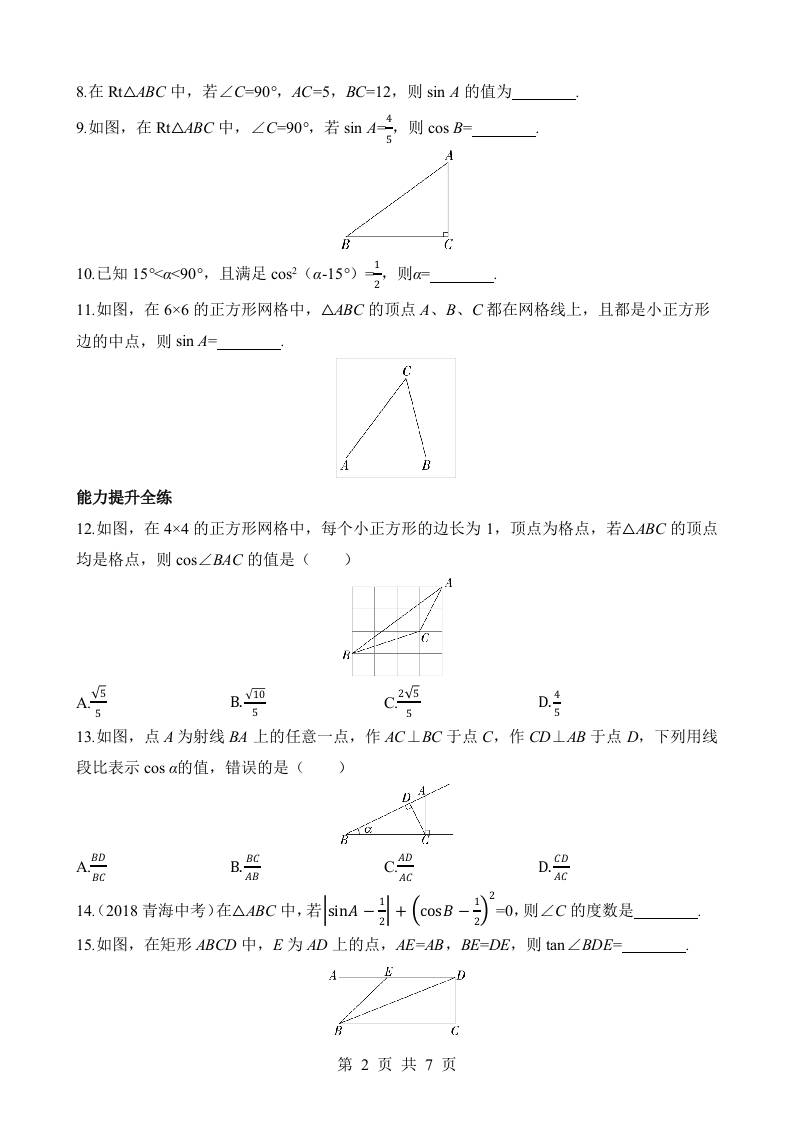 首页 > 全部 > 数学 > 26.1 锐角三角函数 同步练习
