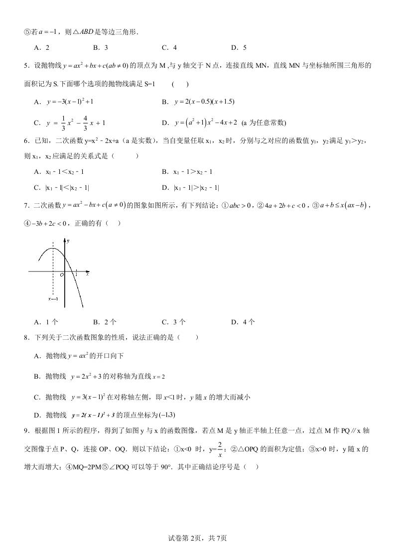 第21章 二次函数与反比例函数 单元测试卷2023-2024学年沪科版九年级上册数学