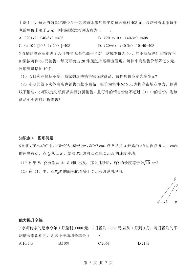 首页 > 全部 > 数学 > 1.4 用一元二次方程解决问题 同步练习